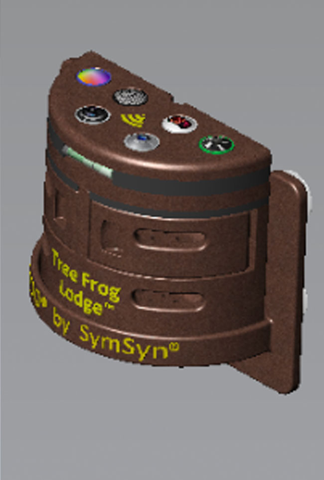 SymSyn is proud to present its first "fully operational" Minimum Viable Product (MVP), complete with a functional smartphone app. This MVP includes the 3-D printing of two units, along with a single-unit window bracket and a double-unit pole cradle. Introducing the 1 or 2-Unit(s) 200 X 150mm Tree Frog Lodge, a manifestation of HabiTechTure's potential. This solar-powered, Wi-Fi-enabled, smartphone-interactive marvel, nearly indestructible, is the result of SymSyn's dedication. The Tree Frog Lodge (TFL) is now a fully patented innovation.