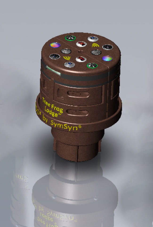 SymSyn is proud to present its first "fully operational" Minimum Viable Product (MVP), complete with a functional smartphone app. This MVP includes the 3-D printing of two units, along with a single-unit window bracket and a double-unit pole cradle. Introducing the 1 or 2-Unit(s) 200 X 150mm Tree Frog Lodge, a manifestation of HabiTechTure's potential. This solar-powered, Wi-Fi-enabled, smartphone-interactive marvel, nearly indestructible, is the result of SymSyn's dedication. The Tree Frog Lodge (TFL) is now a fully patented innovation.